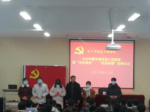 为加强学生党员教育和管理,充分发挥学生党员的先锋模范作用,12月30日,在线转盘 在励行楼B112报告厅举行新党员宣誓暨党员宿舍、党员床铺授牌活动。在线转盘 党委书记夏邦权、党委副书记徐泽绵、各年级辅导员与147名本年度新发展党员参加活动。活动由徐泽绵主持。