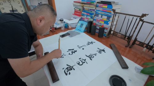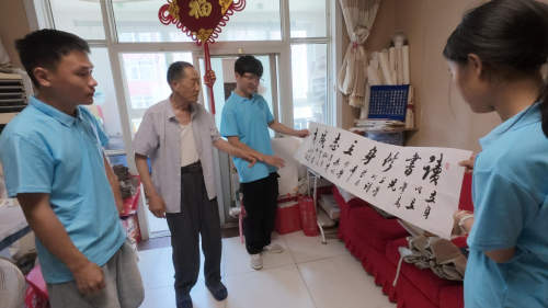 在书法家孙立银家中,实践团聆听他“与墨为伴,凭借对书法的爱好,常以笔会友,一脉墨香代代相续,令中华文化熠熠生辉”的生动故事。他向实践队员强调,“书法精进取决于个人综合素养,自媒体中存在一些矫揉造作、故弄玄虚的乱象,那不过是博眼球的把戏,绝非书法。”