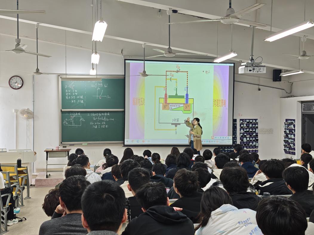 本次示范教学观摩活动由张梅老师主讲,讲授内容为《模拟电子技术》课程“场效应管”相关内容。授课伊始,张梅老师带领学生回顾上次课重点内容,自然衔接课程导入环节。课堂中借助视频动画详细讲授了N沟道增强型场效应管工作原理,将抽象的专业知识问题具体化、易懂化,整个教学过程组织严谨,思路清晰,由浅入深,教学效果反响良好。