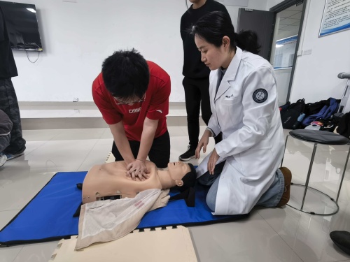 理论讲解结束后,同学们在教师指导下分组进行实操演练。从判断患者意识、呼叫求助,到实施胸外按压、人工呼吸,再到AED开机、电极片粘贴及放电操作,同学们逐一上手练习。现场教师对按压位置、深度、频率等细节进行纠正,确保每位同学都能规范掌握急救技能。
