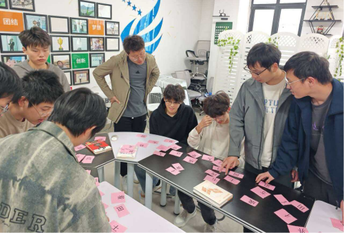 活动伊始,现场布置温馨舒适,各类心理自助、励志成长及人文社科类书籍整齐陈列,供同学们自由取阅。活动围绕“趣味读书”与“心理减压”两大主线展开,设置了自由阅读、好书分享等互动环节,以及拼书名心理小游戏活动。在自由阅读时段,同学们沉浸于书海,通过阅读舒缓情绪、沉淀心灵;在分享交流环节,大家踊跃发言,结合自身经历畅谈读书感悟,推荐有助于调节心态的佳作,现场气氛轻松而热烈。此外,活动还特别设计了心理减压互动游戏,通过寓教于乐的方式帮助同学们释放压力、增进彼此了解。